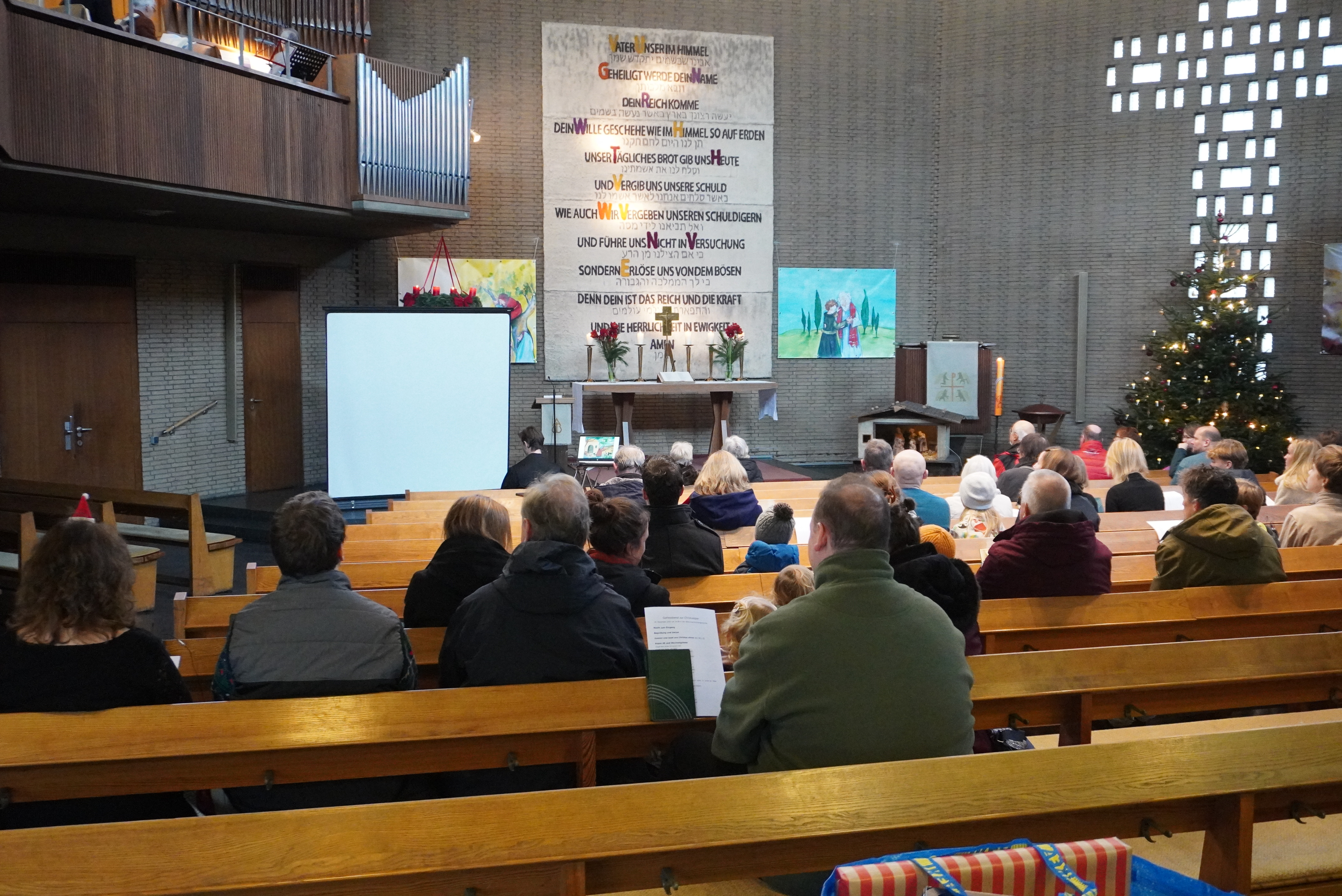 In einem anderen Gottesdienst an Heiligabend wurde mit Bildern von Josef, Maria und Jesus erzählt, von den Hirten und den Sterndeutern.