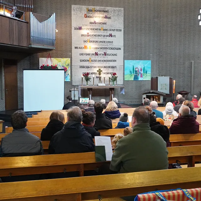 In einem anderen Gottesdienst an Heiligabend wurde mit Bildern von Josef, Maria und Jesus erzählt, von den Hirten und den Sterndeutern.